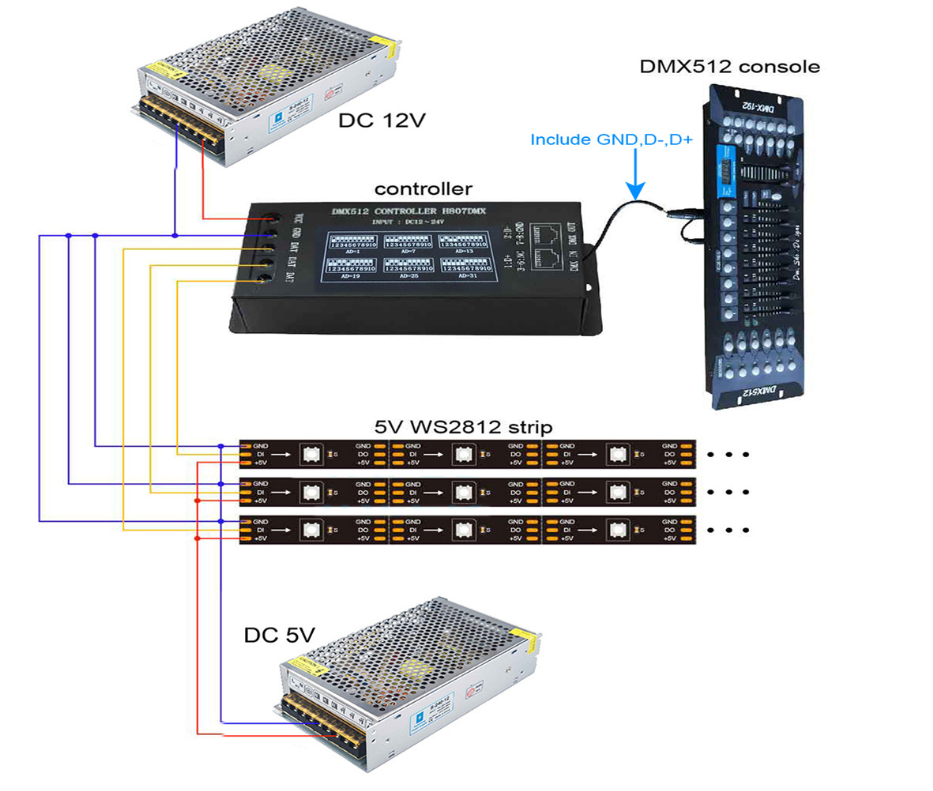 DMX控制器:這是一種發送DMX信號以控制LED燈條的設備。